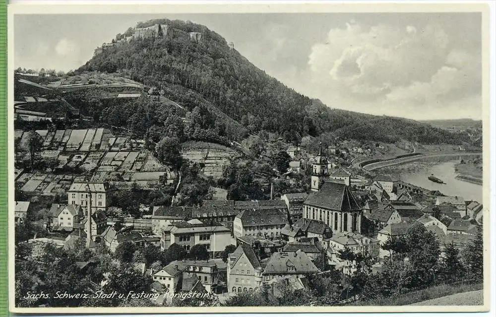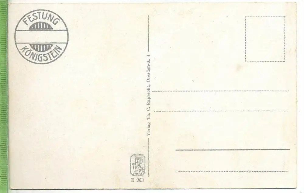 Stadt und Festung Königstein, um 1930/1940 Verlag: Th. C. Ruprecht, Dresden, Postkarte Verso, Stempel FESTUNG KÖNIGSTEIN
