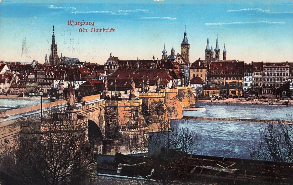 Stadtansicht mit Alte Mainbrücke in Würzburg Bayern Postkarte AK 1915