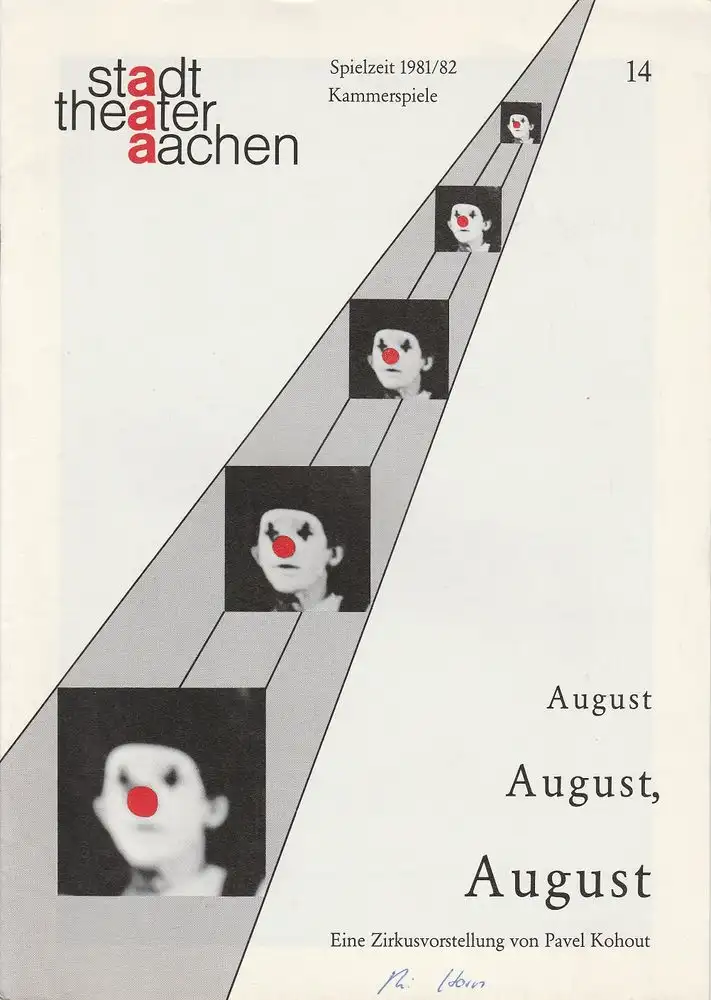 Stadttheater Aachen, Manfred Mützel, Maria Hilchenbach: Programmheft August August, August. Eine Zirkusvorstellung von Pavel Kohout Premiere 16. Februar 1982 Kammerspiele Spielzeit 1981 / 82 Heft 14.