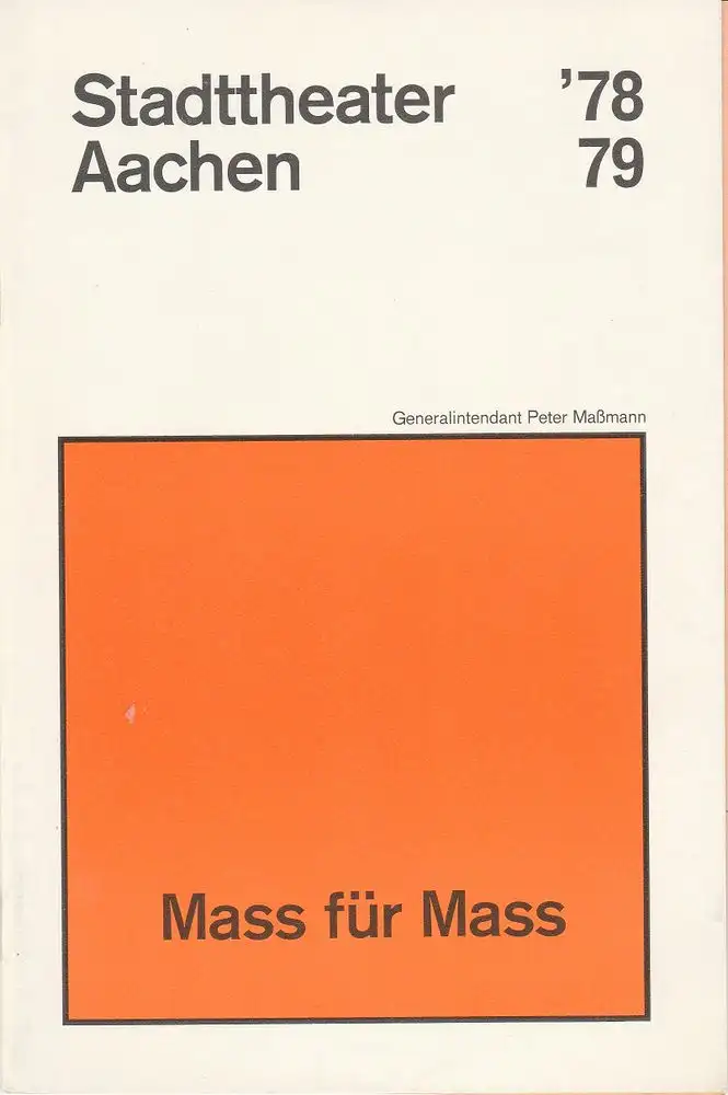 Stadttheater Aachen, Peter Maßmann: Programmheft William Shakespeare: Mass für Mass. Premiere 20. April 1979 Spielzeit 1978 / 79 Heft 18.