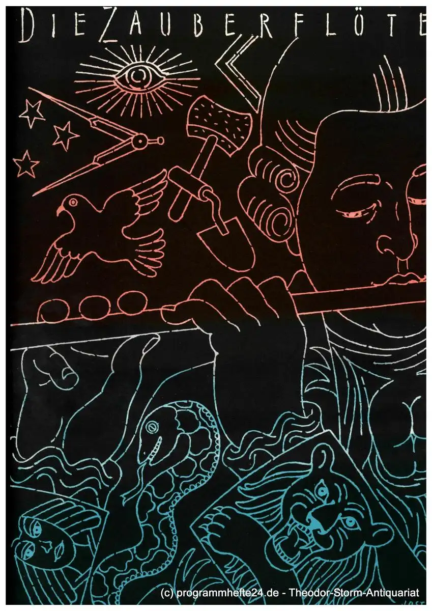 Text von Emanuel Schikaneder. Musik von Wolfgang Amadeus Mozart. Musikalische Leitung: Peter Maag, Jun Märkl. Inszenierung: Günter Roth. Bühnenbild: Heinz Balthes. Kostüme: Jose-Manuel Vazquez. Mitwirkende: Johann-Werner Prein, Louis Lebherz, Frieder Land, Alexander Stevenson, Peter Binder, Ivan Konsulov, Hans Peter Graf, Rudolf Sinzig, u.a. - Theaterprogramm, Opernprogramm, Ballettprogramm, Musicalprogramm, Konzertprogramm, Theatermemorabilia, Programmhefte Sammlung, deutsche Theatergeschichte.