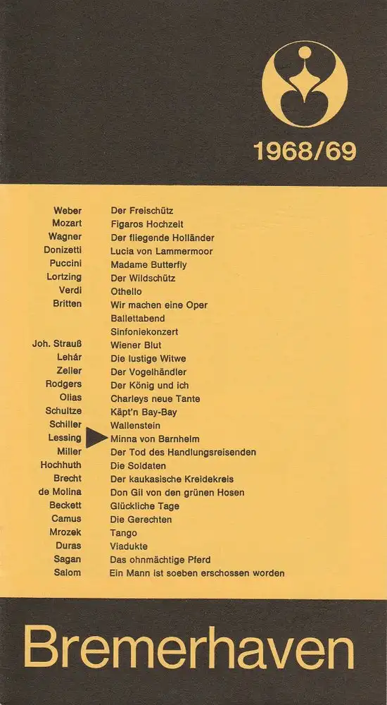Stadttheater Bremerhaven, Jürgen-Dieter Waidelich, Hans Eckardt: Programmheft Minna von Barnhelm oder Das Soldatenglück. Spielzeit 1968 / 69 Grosses Haus.