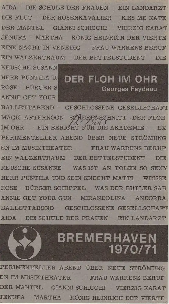 Stadttheater Bremerhaven, Jürgen Waidelich, Hans Eckardt: Programmheft Der Floh im Ohr. Schwank von Georges Feydeau Spielzeit 1970 / 71.