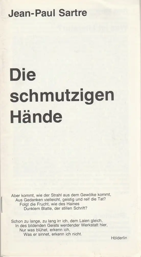 Titel: Programmheft Jean Paul Sartre DIE SCHMUTZIGEN HÄNDE Premiere 2. Dezember 1978 Großes Haus Spielzeit 1978 / 79 Heft 16