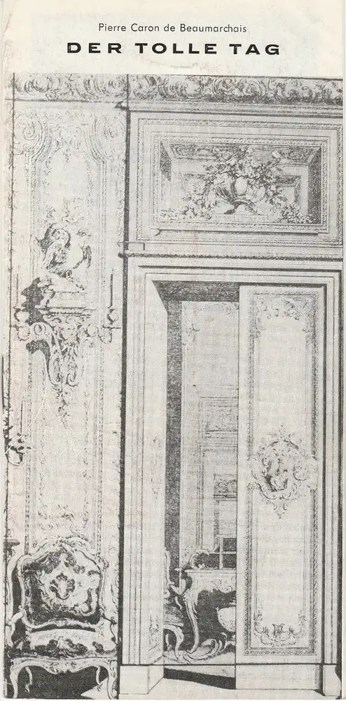 oder Die Hochzeit des Figaro. Komödie. Regie: Ekkehard Dennewitz. Bühnenbild: Eberhard Gerschler. Kostüme: Ingrid Gerschler. Musik: Hans Otto. Mitwirkende: Manfred Richter, Gloria Nowack, Rolf Staude, Ingrid Schwienke, Ruth Bauer, u. a. - Theaterprogramm, Opernprogramm, Ballettprogramm, Musicalprogramm, Konzertprogramm, Theatermemorabilia, Programmhefte Sammlung, deutsche Theatergeschichte.