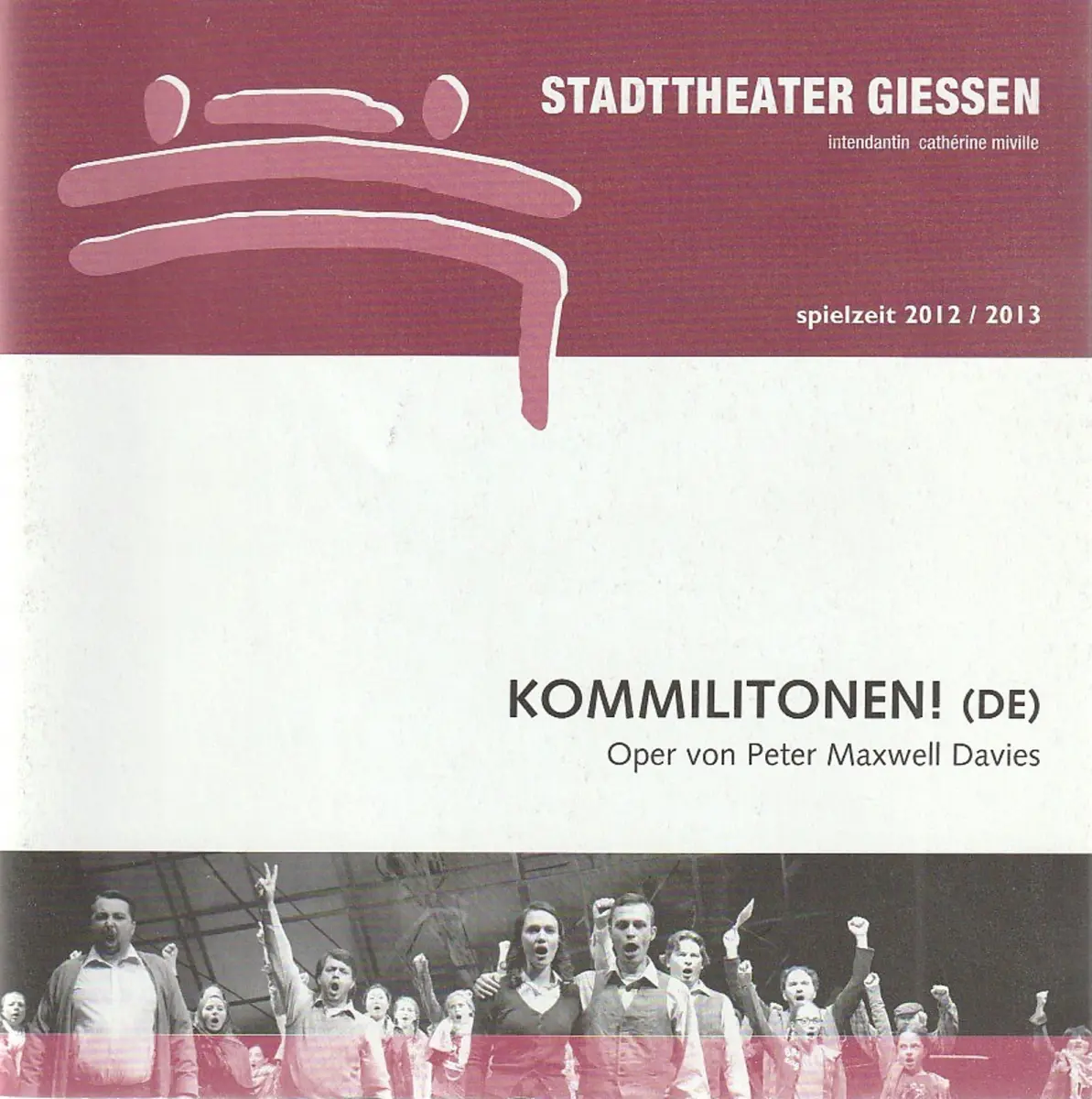 Stadttheater Giessen, Catherine Miville, Christian Schröder, Jörn Schütte: Programmheft Peter Maxwell Davies KOMMILITONEN Premiere 5. Mai 2013 Spielzeit 2012 / 13.