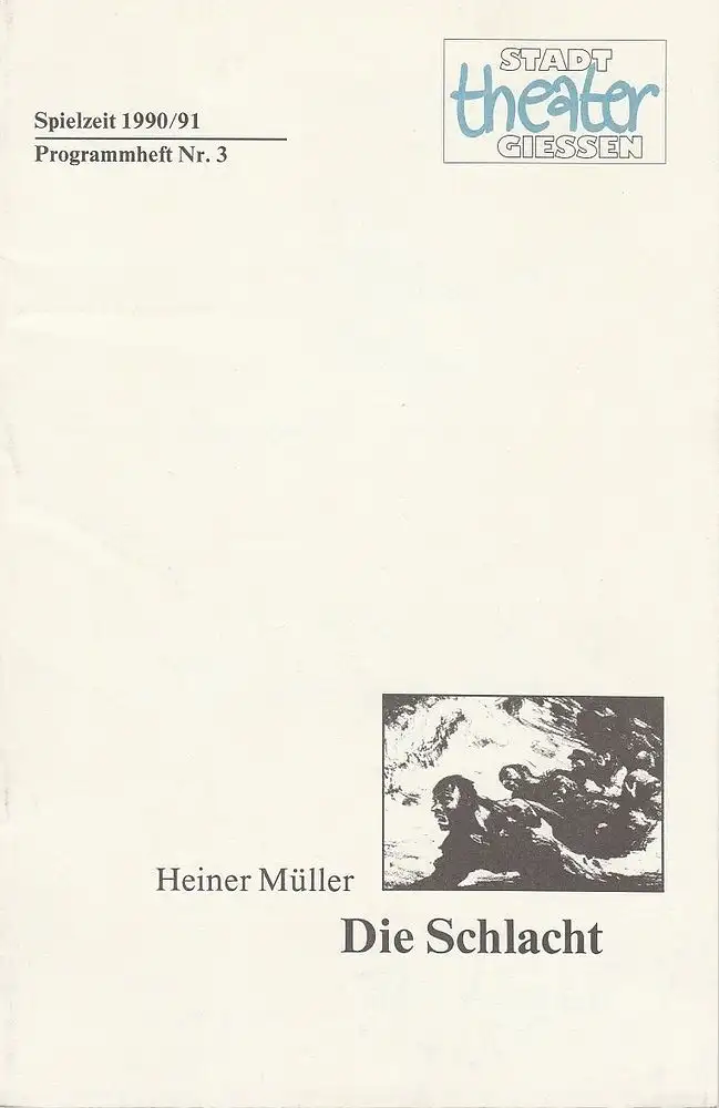 Stadttheater Gießen, Jost Miehlbradt, Hans-Jörg Grell: Programmheft Heiner Müller: DIE SCHLACHT Premiere 23. September 1990 Spielzeit 1990 / 91 Nr. 3.