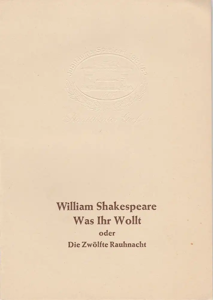 oder Di Zwölfte Rauhnacht. Inszenierung: Franz Winter. Bühnenbild: Thomas Pekny. Kostüme: Alain Fressanges du Bost. Mitwirkende: Rimbert Spielvogel, Dieter Boos, Abdul-M. Kunze, Christoph Piesk, Reinhold Kospach, u.a. - Theaterprogramm, Opernprogramm, Ballettprogramm, Musicalprogramm, Konzertprogramm, Theatermemorabilia, Programmhefte Sammlung, deutsche Theatergeschichte.