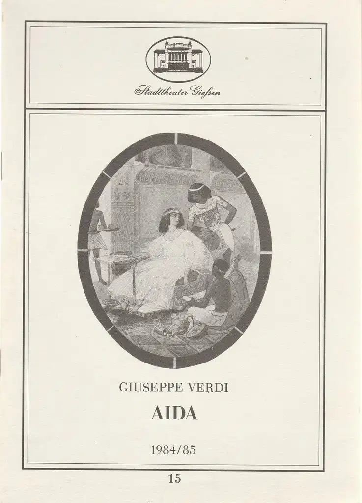 Stadttheater Giessen, Reinald Heissler-Remy, Ged Hüttenhofer, Annette Vosteen: Programmheft Giuseppe Verdi AIDA Premiere 17. Juni 1985 Spielzeit 1984 / 85 Heft 15.
