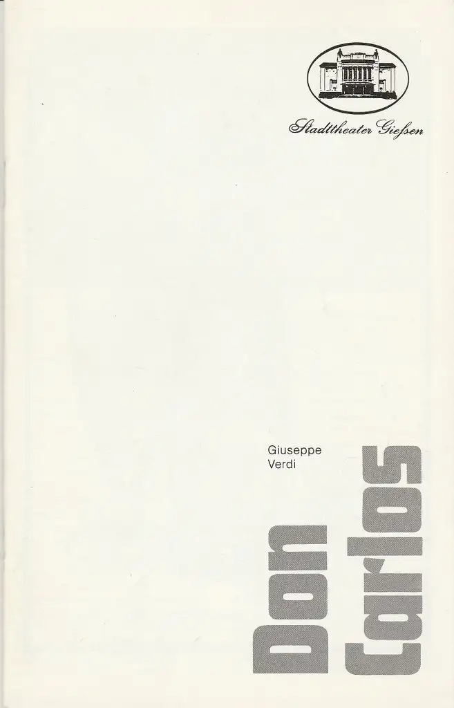 Stadttheater Giessen, Reinald Heissler-Remy, Wolfgang Maaß: Programmheft Giuseppe Verdi DON CARLOS Premiere 21. September 1986 Spielzeit 1986 / 87 Heft 2.
