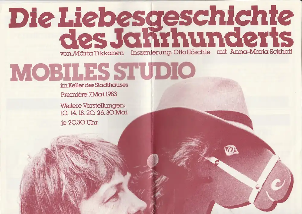 Titel: Programmheft Märta Tikkanen DIE LIEBESGESCHICHTE DES JAHRHUNDERTS Premiere 7. Mai 1983 Mobiles Studio im Keller des Stadhauses