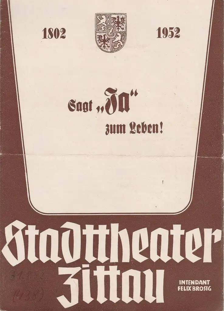 Stadttheater Zittau, Felix Brossig, Hubertus Methe: Programmheft SAGT JA ZUM LEBEN Bunter Abend Spielzeit 1952 / 53.