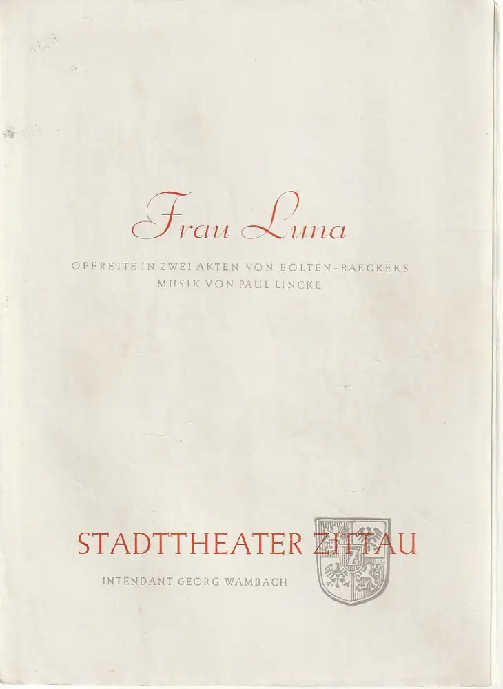 Stadttheater Zittau, Georg Wambach, Hubertus Methe, Wilfred Wolff ( Zeichnungen ): Programmheft Paul Lincke FRAU LUNA.