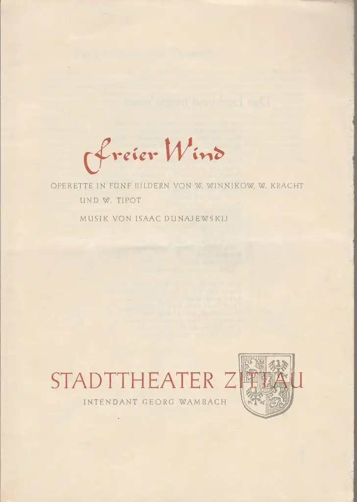 Stadttheater Zittau, Georg Wambach: Programmheft Isaac Dunajewskij FREIER WIND.