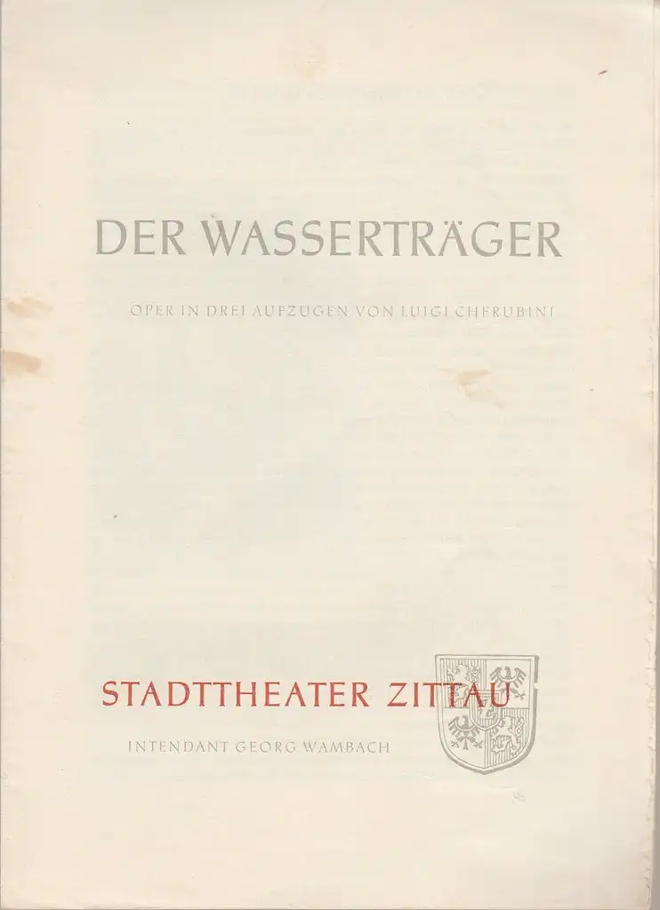 Stadttheater Zittau, Georg Wambach: Programmheft Luigi Cherubini DER WASSERTRÄGER.
