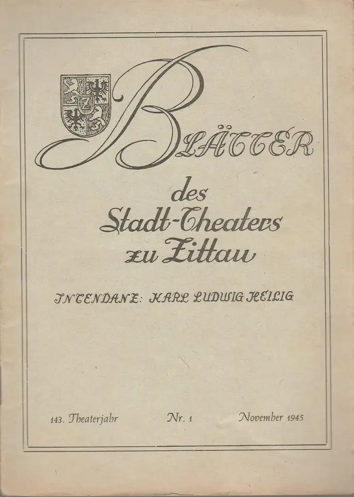Stadttheater Zittau, Intendanz: Karl Ludwig Heilig, Hans Müller: Blätter des Stadt-Theaters Zittau Nr. 1 November 1945 143. Theaterjahr.