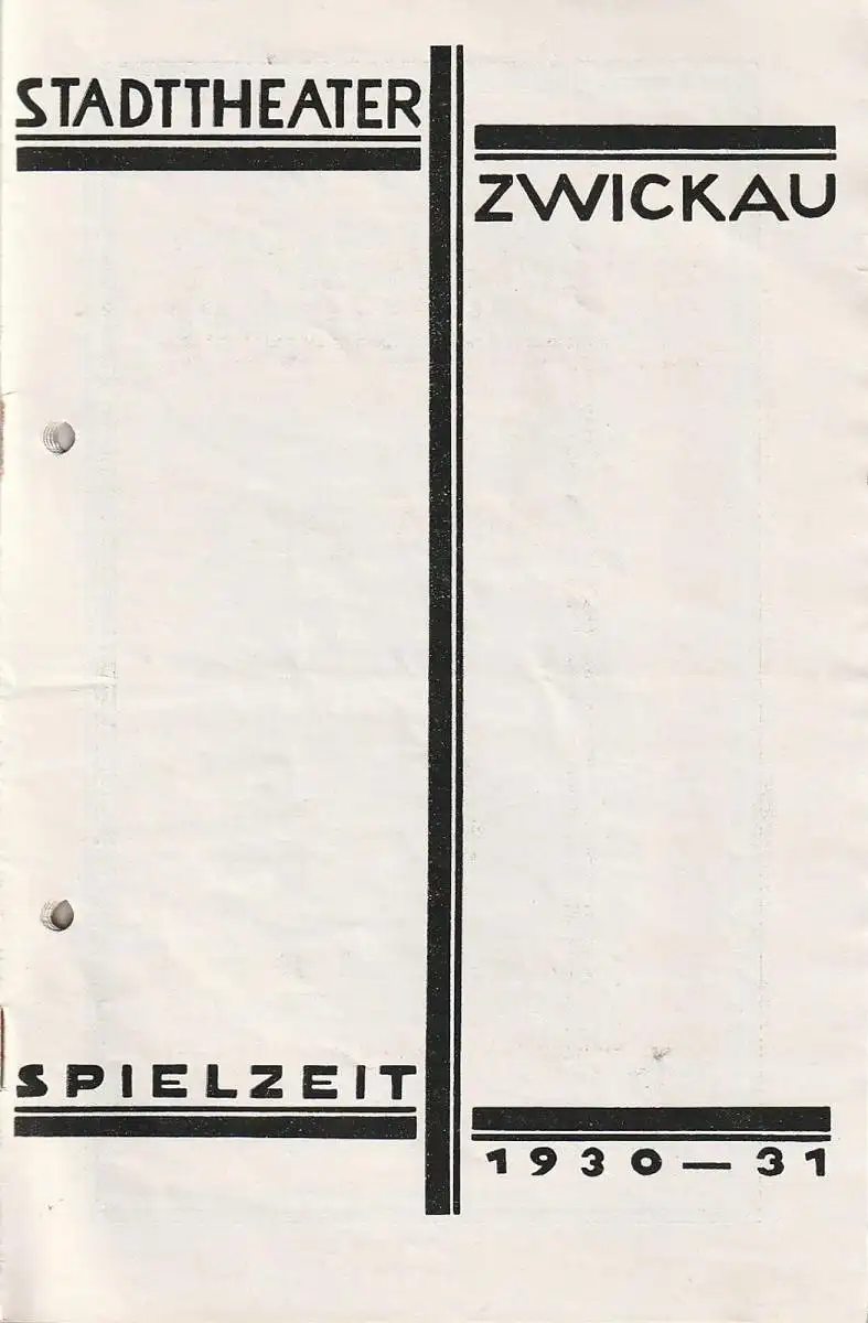 Stadttheater Zwickau, Stadttheater Reichenbach, Wolfgang Poppe: Programmheft Franz Lehar DER ZAREWITSCH 6. März 1931 Spielzeit 1930 – 31.