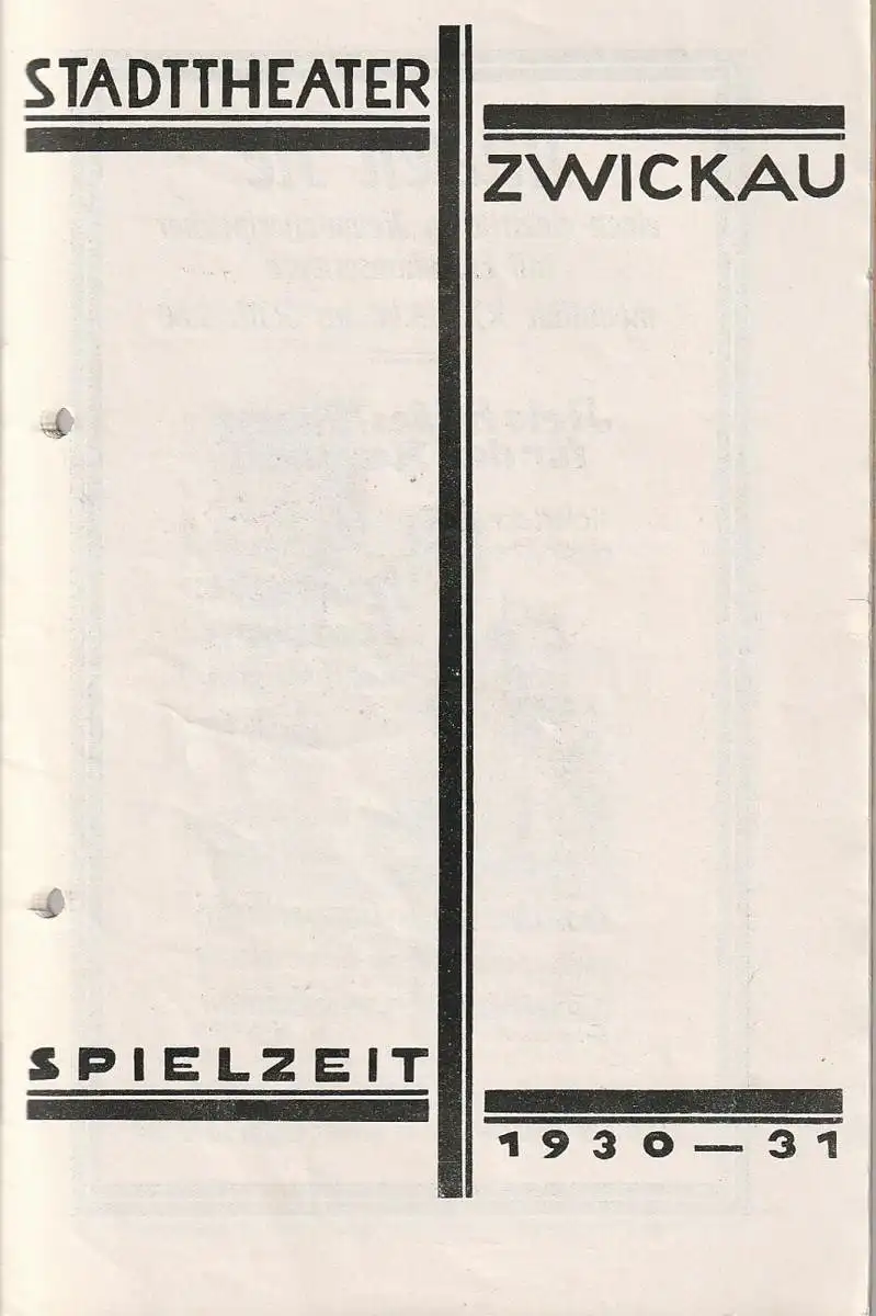 Stadttheater Zwickau, Stadttheater Reichenbach, Wolfgang Poppe: Programmheft Fred A. Angermayer FLIEG' ROTER ADLER VON TIROL 3. Oktober 1930 Spielzeit 1930 – 31.