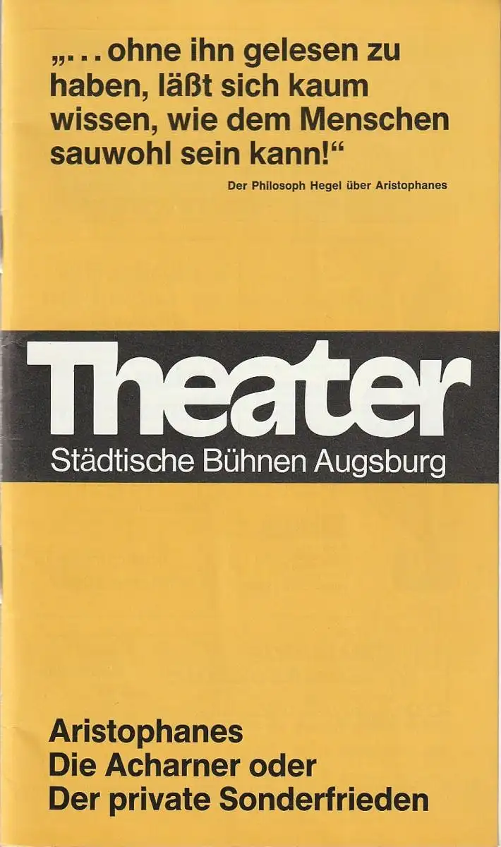Städtische Bühnen Augsburg, Rudolf Stromberg, Klaus Hupfeld, Heinrich Fürtinger: Programmheft Aristophanes DIE ACHARNER Premiere 17. Mai 1974 Spielzeit 1973 / 74 Heft 18.