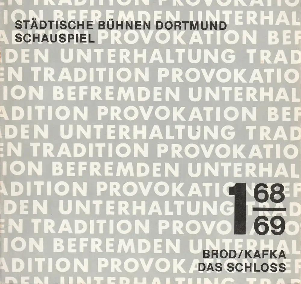 Städtische Bühnen Dortmund, Schauspiel, Gert Otmar Leutner, Fritz Wolter, Adolf Mahnke: Programmheft Max Brod DAS SCHLOSS Premiere 13. September 1968 Kleines Haus Spielzeit 1968 / 69 Heft 1.