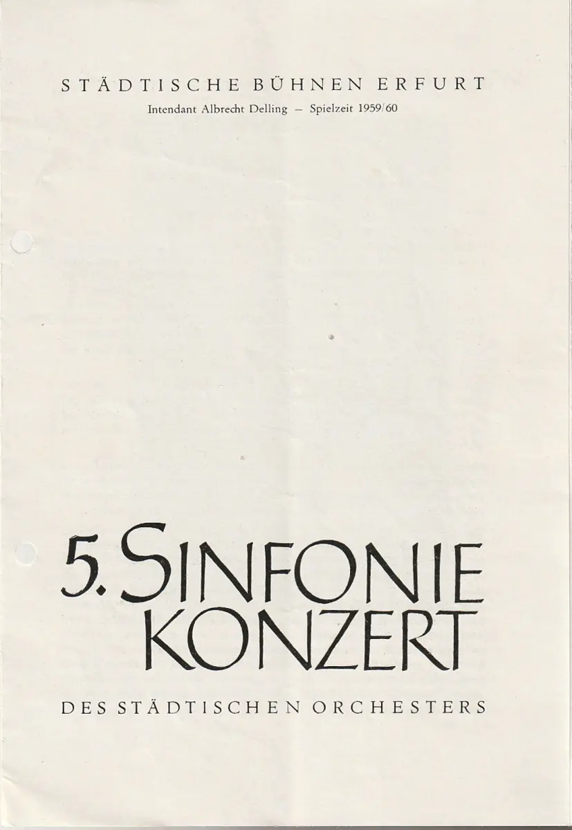 Städtische Bühnen Erfurt, Albrecht Delling, Wolfgang Marggraf: Programmheft 5. SINFONIEKONZERT DES STÄDTISCHEN ORCHESTERS ERFURT 18. März 1960 Spielzeit 1959 / 60.