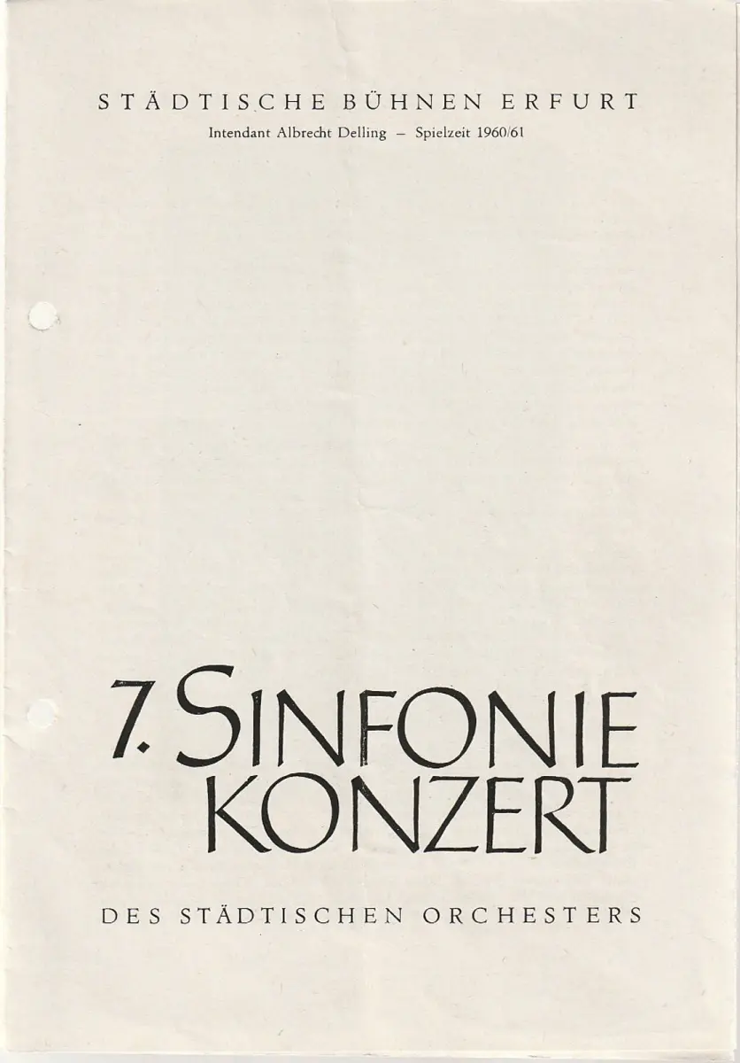 Städtische Bühnen Erfurt, Albrecht Delling, Wolfgang Marggraf: Programmheft 7. SINFONIEKONZERT DES STÄDTISCHEN ORCHESTERS ERFURT 3. Mai 1961 Spielzeit 1960 / 61.