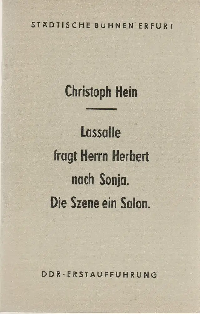 Städtische Bühnen Erfurt, Bodo Witte, Jürgen Fischer, Andreas Nattermann, Jutta Mager: Programmheft Christoph Hein LASALLE FRAGT HERRN HERBERT NACH SONJA Premiere 14. Februar 1987 Spielzeit 1987 Heft 2.