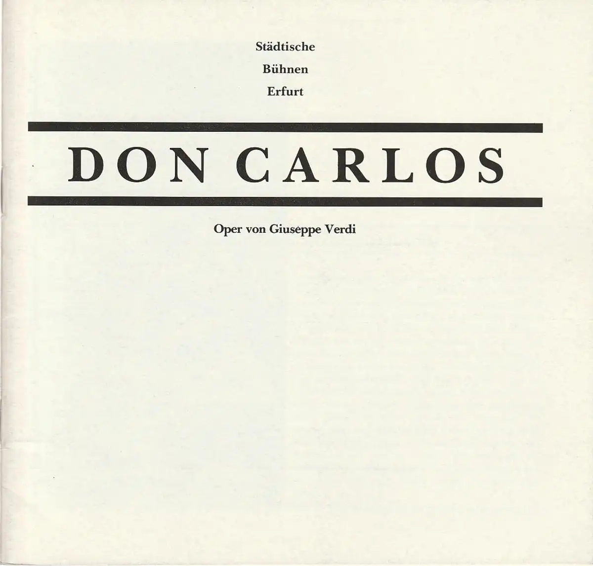 Städtische Bühnen Erfurt, Bodo Witte, Jürgen Fischer, Ute Unger, Jutta Mager: Programmheft Giuseppe Verdi DON CARLOS Premiere 3. Februar 1990 Spielzeit 1990 Heft 3.
