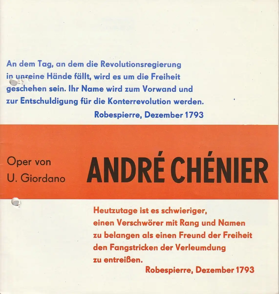 Städtische Bühnen Erfurt, Bodo Witte, Jürgen Fischer, Ute Unger: Programmheft Umberto Giordano ANDRE CHENIER Premiere 5. Februar 1988 Spielzeit 1988.