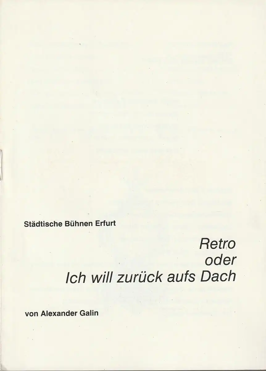Städtische Bühnen Erfurt, Bodo Witte, Lothar Ehrlich, Waltraud Moser: Programmheft Alexander Galin RETRO oder ICH WILL ZURÜCK AUFS DACH Premiere 4. Mai 1985 Spielzeit 1985 Heft 3.