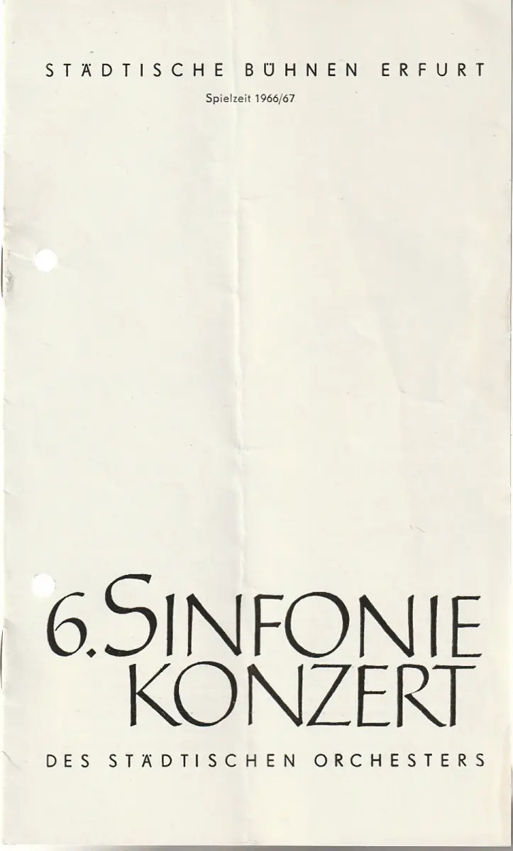 Titel: Programmheft 6. SINFONIEKONZERT DES STÄDTISCHEN ORCHESTERS ERFURT 23. Februar 1967 Spielzeit 1966 / 67