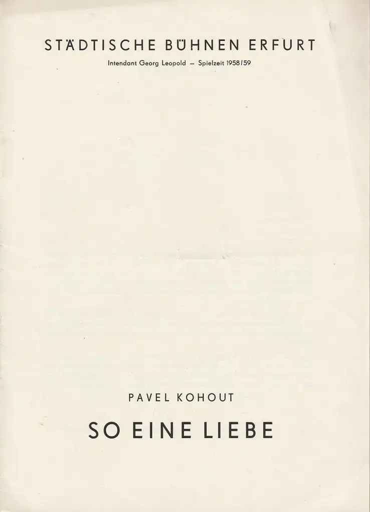 Städtische Bühnen Erfurt, Georg Leopold, Hans Welker: Programmheft Pavel Kohout SO EINE LIEBE Premiere 14. September 1958 Spielzeit 1958 / 59 Heft 3.
