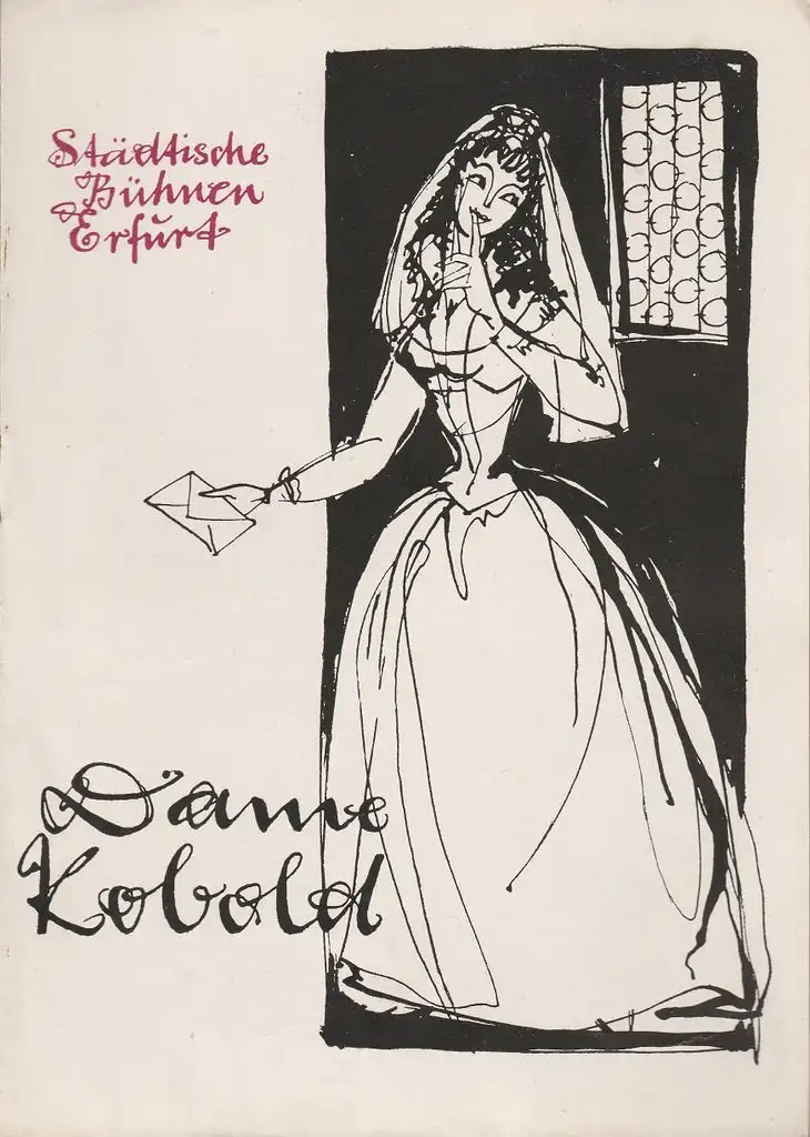 Städtische Bühnen Erfurt, Georg Leopold, Hans Welker, Regina Holland-Cunz ( Illustrationen ): Programmheft Calderon de la Barca DAME KOBOLD Premiere 25. Dezember 1958 Spielzeit 1958 / 59.