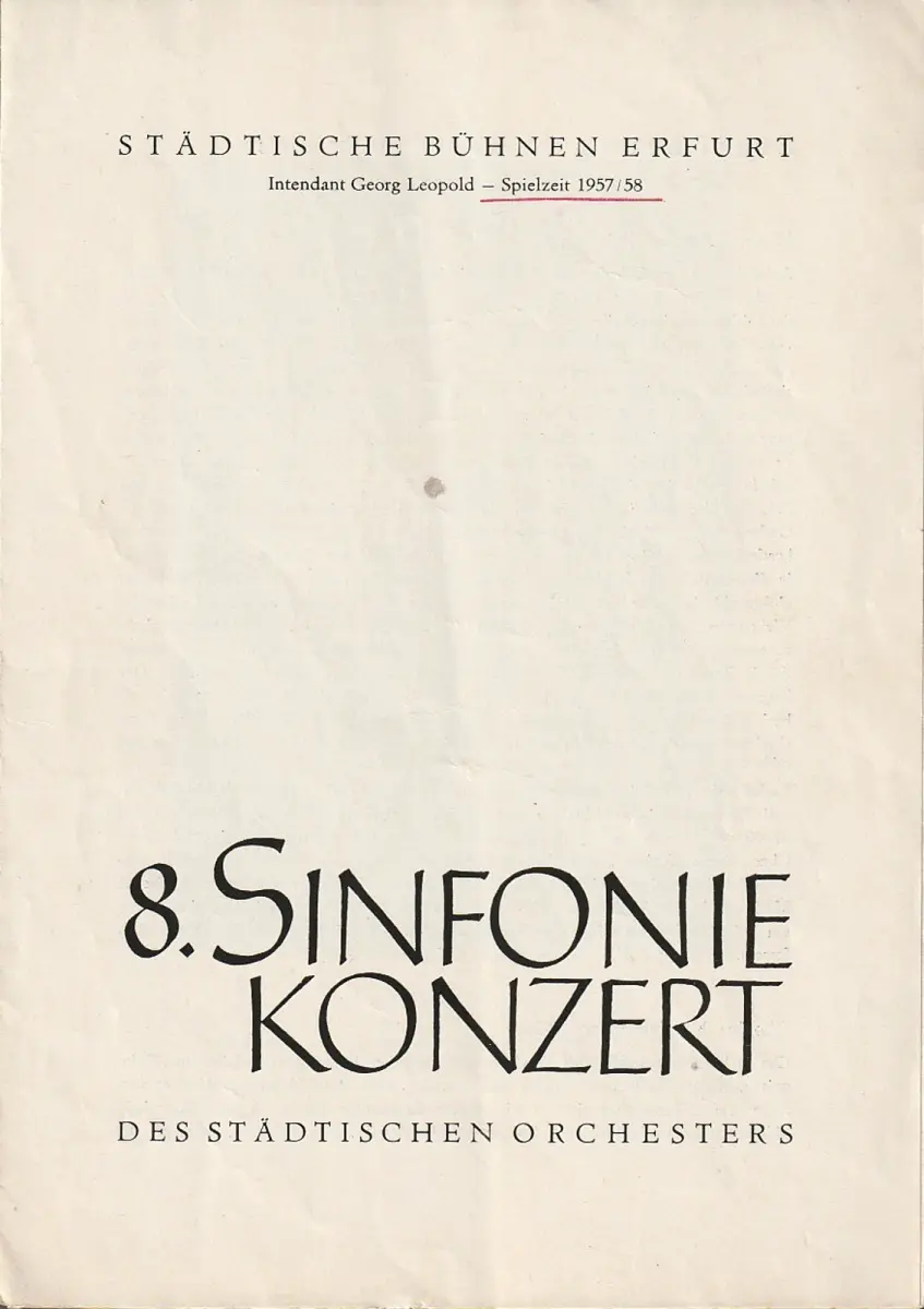 Titel: Programmheft 8. SINFONIEKONZERT DES STÄDTISCHEN ORCHESTERS ERFURT 11. + 12. April 1958 Spielzeit 1957 / 58