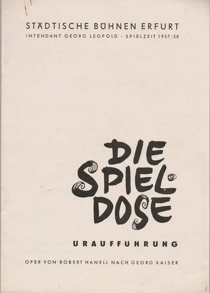 Städtische Bühnen Erfurt, Georg Leopold, Ilse Winter, Margret Müller ( Illustrationen ): Programmheft Robert Hanell DIE SPIELDOSE Uraufführung 30. November 1957 Spielzeit 1957 / 58 Heft 9.