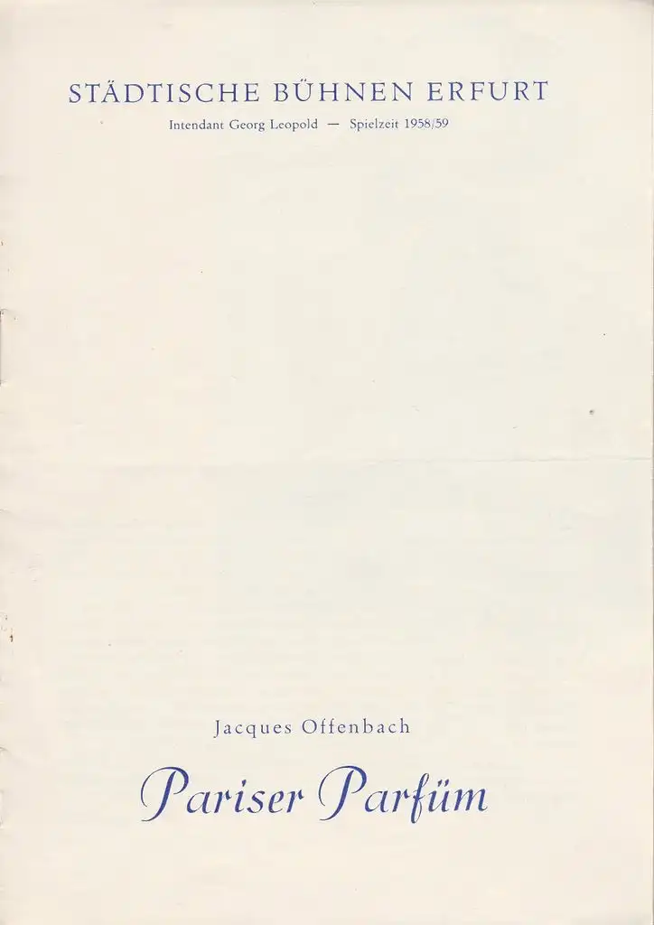 Städtische Bühnen Erfurt, Georg Leopold, Walter Hardtmann: Programmheft Jacques Offenbach PARISER PARFÜM Premiere 21. September 1958 Spielzeit 1958 / 59 Heft 4.
