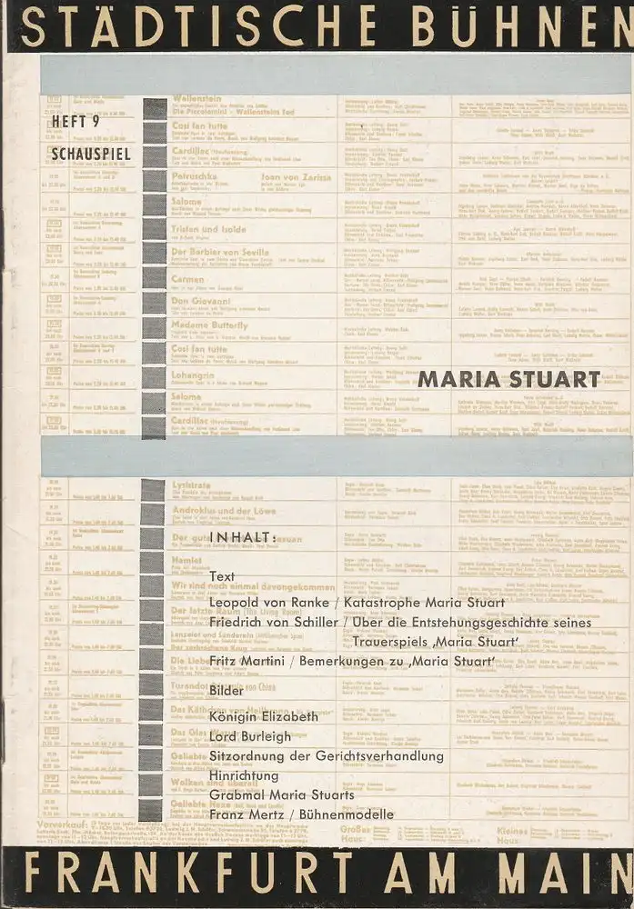 Städtische Bühnen Frankfurt am Main, Harry Buckwitz, Günter Skopnik, Rudi Seitz: Programmheft Friedrich Schiller MARIA STUART 20. Februar 1959 Grosses Haus Spielzeit 1958 / 59 Heft 9.