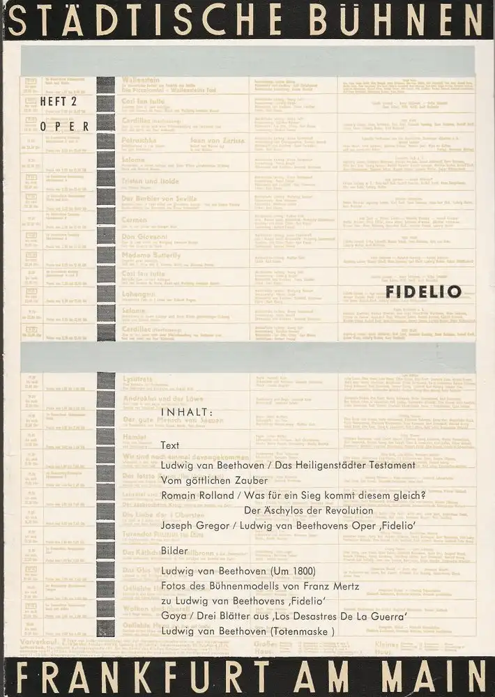 Städtische Bühnen Frankfurt am Main, Harry Buckwitz, Helmut Krapp, Otfried Büthe, Rudi Seitz: Programmheft Ludwig van Beethoven FIDELIO Spielzeit 1959 / 60 Heft 2.