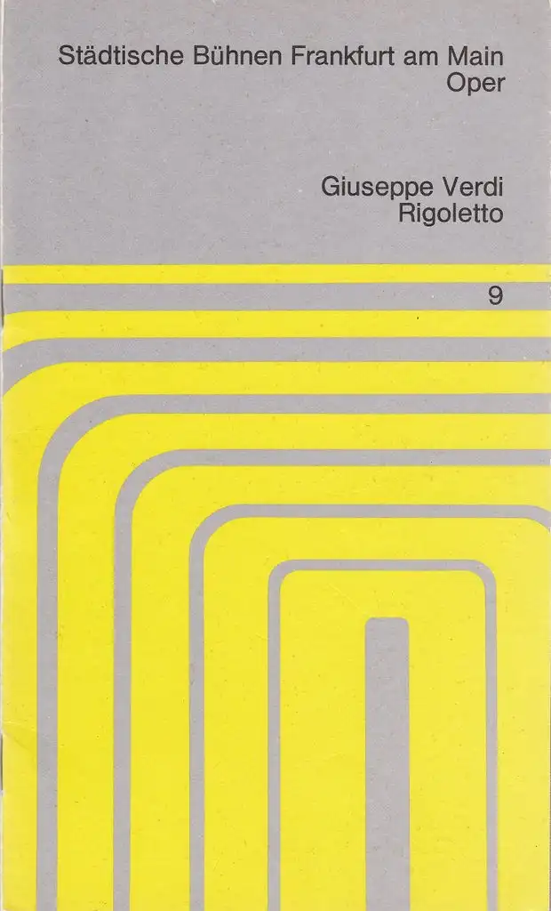 Oper nach Victor Hugo's Le Roi s'amuse von Francesco Maria Piave. Muskalische Leitung: Christoph von Dohnanyi. Inszenierung und Ausstattung: Filippo Sanjust. Choreographie: John Mandia. Mitwirkende: Wieslaw Ochmann, Kostas Paskalis, Urszula Koszut, Heinz Hagenau, Agnes Baltsa, Rosl Zapf, Dieter Weller, Denis Trussas, Alfred Vögt, Richard Cross, u.a. - Theaterprogramm, Opernprogramm, Ballettprogramm, Musicalprogramm, Konzertprogramm, Theatermemorabilia, Programmhefte Sammlung, deutsche Theatergeschichte.
