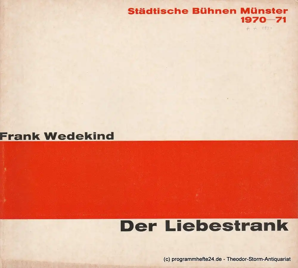 Städtische Bühnen Münster, Horst Gnekow, Rudolf Rach, Louis Naef: Programmheft Der Liebestrank. Schwank von Frank Wedekind. Spielzeit 1970 / 71.