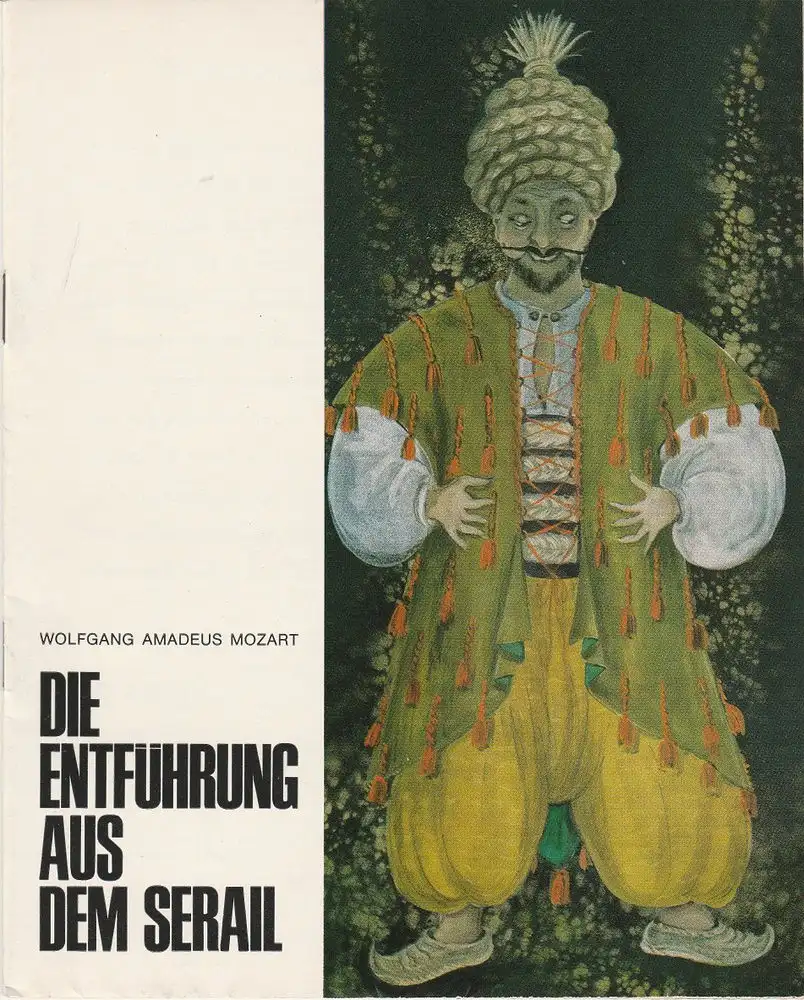 Singspiel in drei Aufzügen nach Bretzner frei bearbeitet von Stephanie d. J.. Musikalische Leitung: Hans Gierster. Inszenierung: Hans-Peter Lehmann. Bühne: Jörg Zimmermann. Kostüme: Margret Kaulbach. Mitwirkende: Paul Bösinger, May Sandoz, Sharon Bennett, Thomas Lehrberger, Frieder Stricker, u. a. - Theaterprogramm, Opernprogramm, Ballettprogramm, Musicalprogramm, Konzertprogramm, Theatermemorabilia, Programmhefte Sammlung, deutsche Theatergeschichte.
