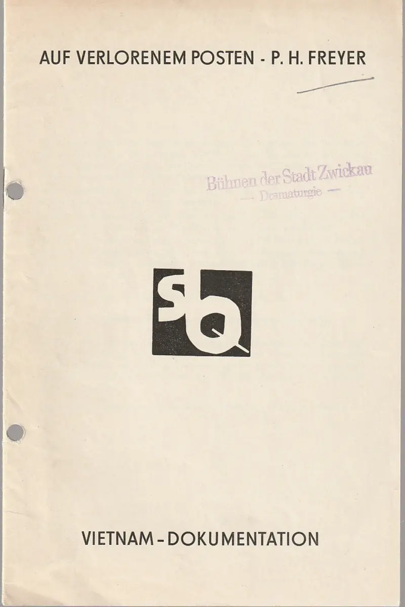 Vietnam-Dokumentation. Schauspiel. Regie: Ule Kuckhoff. Ausstattung: Herbert B. Voigt. Mitwirkende: Heiner Kröger, Peter Zirkler, Achim Wolff, Brigitte Kränzel / Marie-Luise Rosetz - Schlüsselwörter: Theaterprogramm, Opernprogramm, Ballettprogramm, Musicalprogramm, Konzertprogramm, Theatermemorabilia, Programmhefte Sammlung, deutsche Theatergeschichte.