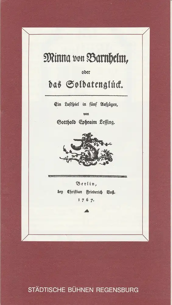 Lustspiel von Gotthold Ephraim Lessing. Inszenierung: Henry-E. Simmon. Bühne und Kostüme: Burgi Richter. Mitwirkende: Manfred Spies, Silvia van Spronsen, Rolf Schneider, Hede Beck, Roland Fröhlich, Paul Gorden, Ralf Ultaver, Toni Mag, u.a. - Theaterprogramm, Opernprogramm, Ballettprogramm, Musicalprogramm, Konzertprogramm, Theatermemorabilia, Programmhefte Sammlung, deutsche Theatergeschichte.