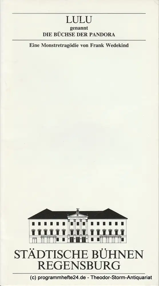 Städtische Bühnen Regensburg, Marietheres List, Christa-Renate Thutewohl: Programmheft Die Büchse der Pandora ( LULU ) Premiere 1. März 1991 Spielzeit 1990 / 91 Heft 12.