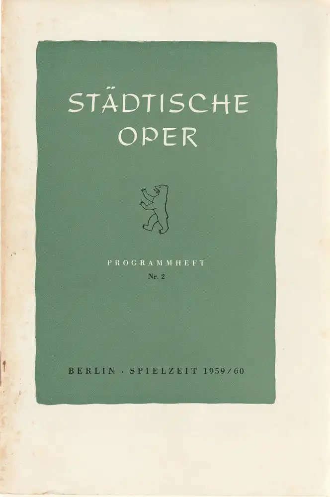 Im Rahmen der Berliner Festwochen. Oratorium. Neue Fassung in zwei Akten von Wilhelm Brückner-Rüggeberg. Musikalische Leitung: Richard Kraus. Inszenierung: Wolf Völker. Bühne und Kostüme: Wilhelm Reinking. Chöre: Ernst Senff. MW Marlies Siemeling, Walter Geisler, Sieglinde Wagner, Peter Roth-Ehrang, Tomislav Neralic, u. a. - Theaterprogramm, Opernprogramm, Ballettprogramm, Musicalprogramm, Konzertprogramm, Theatermemorabilia, Programmhefte Sammlung, deutsche Theatergeschichte.