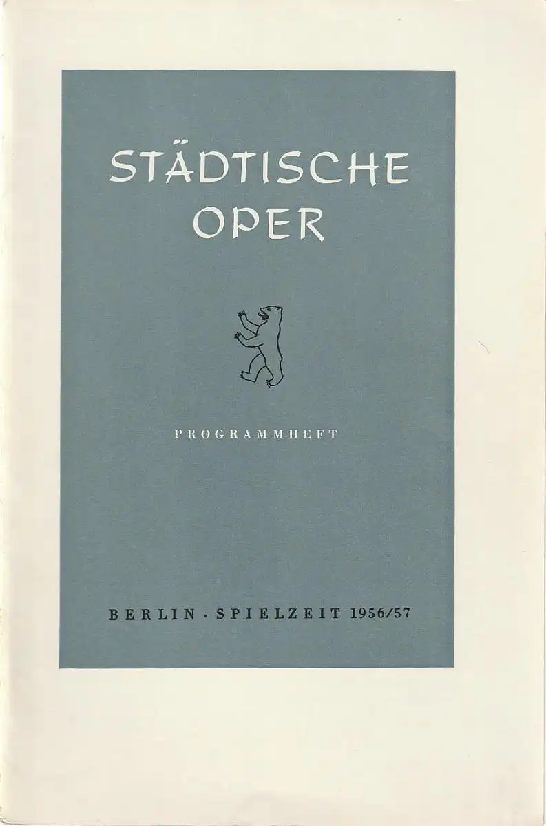 Städtische Oper Berlin, Carl Ebert: Programmheft Carl Maria von Weber DER FREISCHÜTZ Premiere 8. Mai 1957 Spielzeit 1956 / 57.