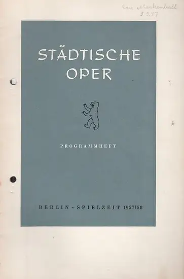 Städtische Oper Berlin. - Intendant Ebert, Carl. - Giuseppe Verdi. - Antonio Somma. - Francesco Maria Piave: Programmheft. Spielzeit 1957 / 1958. Mit Besetzungsliste zu: Ein Maskenball. Musikalische Leitung: Wolfgang Martin / Inszenierung: Carl Ebert / Bü