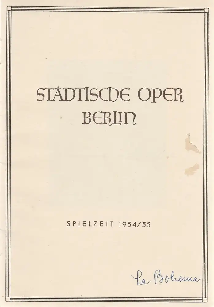 Städtische Oper Berlin: Programmheft Giacomo Puccini LA BOHEME. Oper. 9. März 1955 Spielzeit 1954 / 55.
