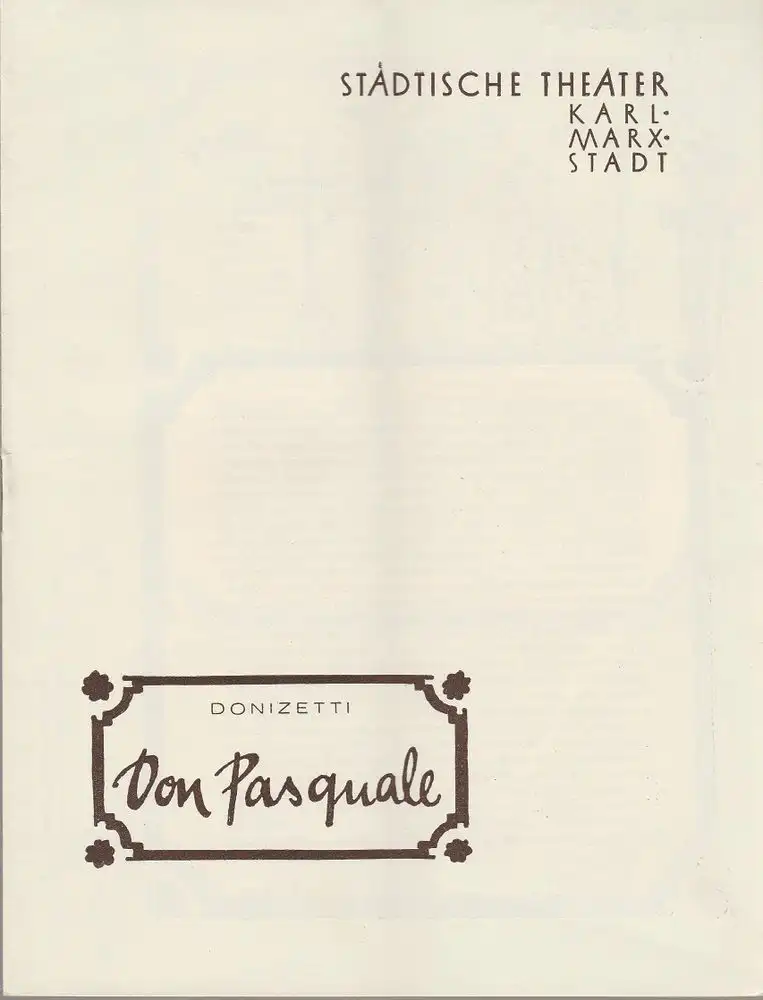 Städtische Theater Karl-Marx-Stadt, Gunther Witte, Manfred Koerth, Peter Friede: Programmheft Gaetano Donizetti DON PASQUALE 9. Juni 1962.