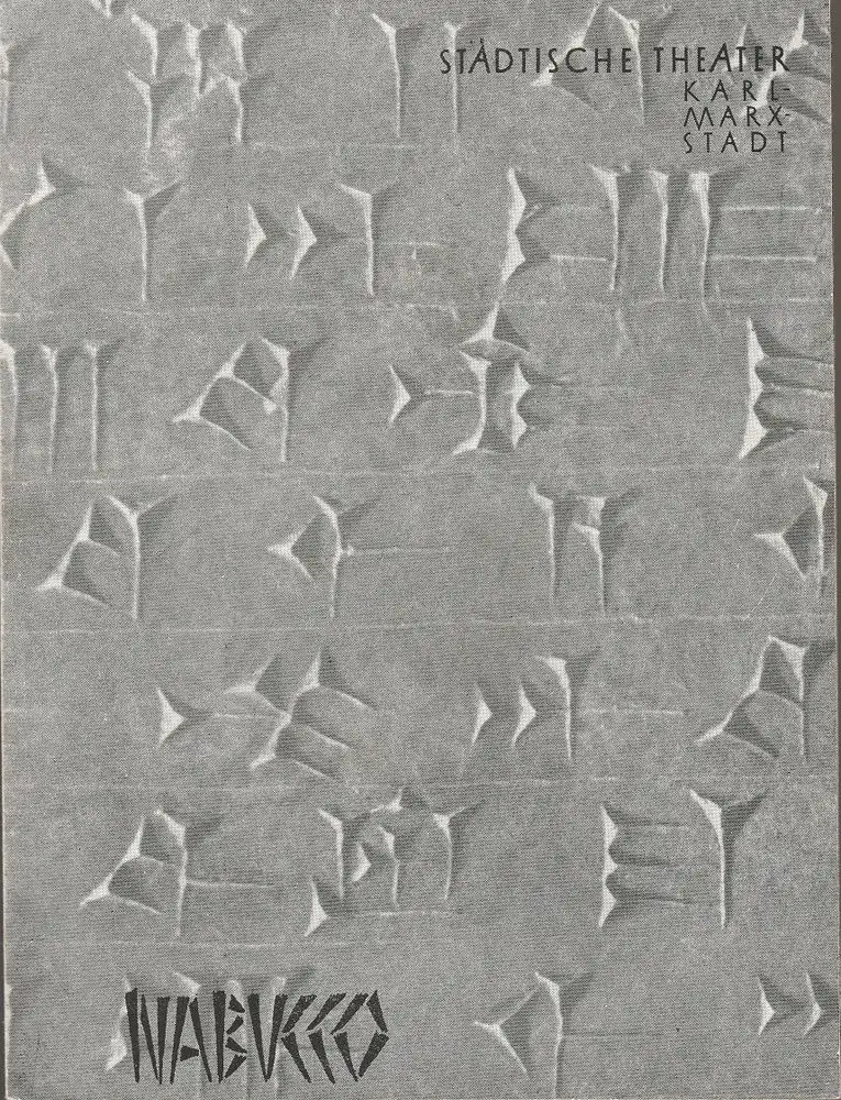 Text und Handlung frei nach Temistocle Solera von Erich geiger. Musikalische Leitung: Günter Blumhagen. Inszenierung: Harry Kupfer. Bühnenbild: Horst Leiteritz. Kostüme: Renate Heuschkel. Chöre: Franz Pezer Müller-Sybel. Mitwirkende: Alfred Krohn, Lajos Pasztor, Adolf Savelkouls, Christa Wildgrube, u. a. - Theaterprogramm, Opernprogramm, Ballettprogramm, Musicalprogramm, Konzertprogramm, Theatermemorabilia, Programmhefte Sammlung, deutsche Theatergeschichte.